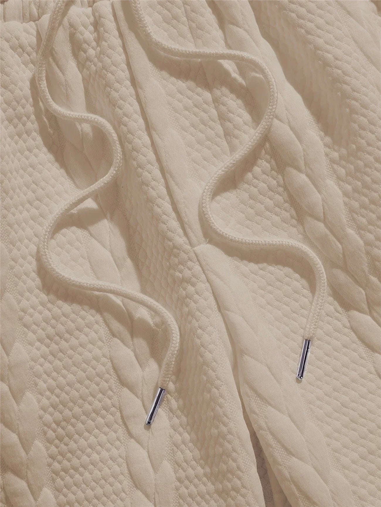 ✅Proiectare elegant, texturat: Cu un model unic tricotat în stil cablu, acest set aduce o notă modernă ținutelor clasice de casă. Textura detaliată adaugă profunzime și interes vizual, făcându-l mai mult decât un simplu set de bază. Liniile curate și stilul minimalist vă asigură un uită-te îngrijit, fără efort.