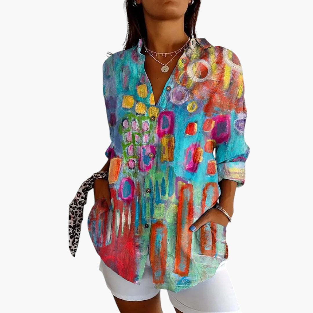 Imprimare florală timeless: Imprimarea elegantă cu flori în mai multe culori conferă bluzei un aer vintage care rămâne mereu la modă.