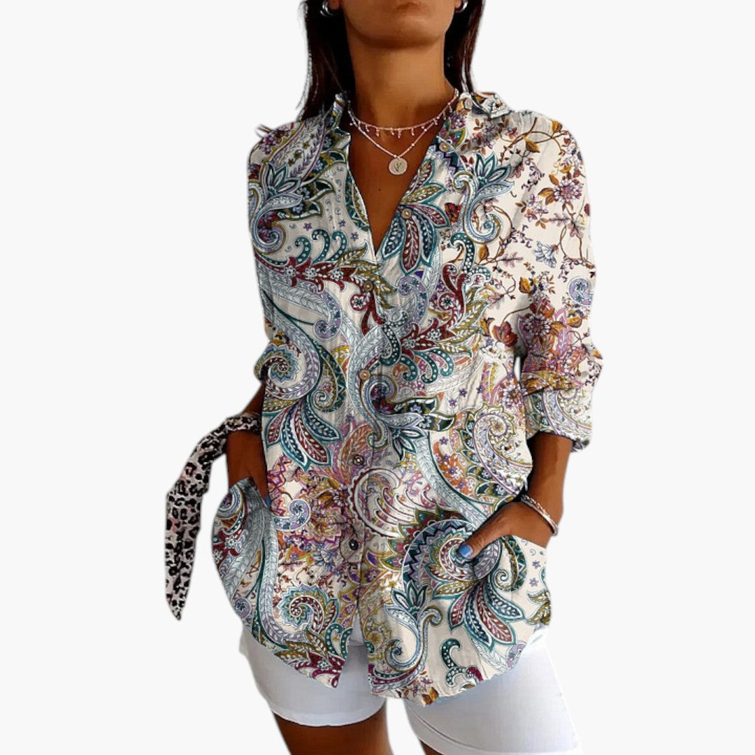 Imprimare florală atemporală: Imprimarea elegantă de flori în mai multe culori oferă bluzei un flair vintage care rămâne mereu la modă.