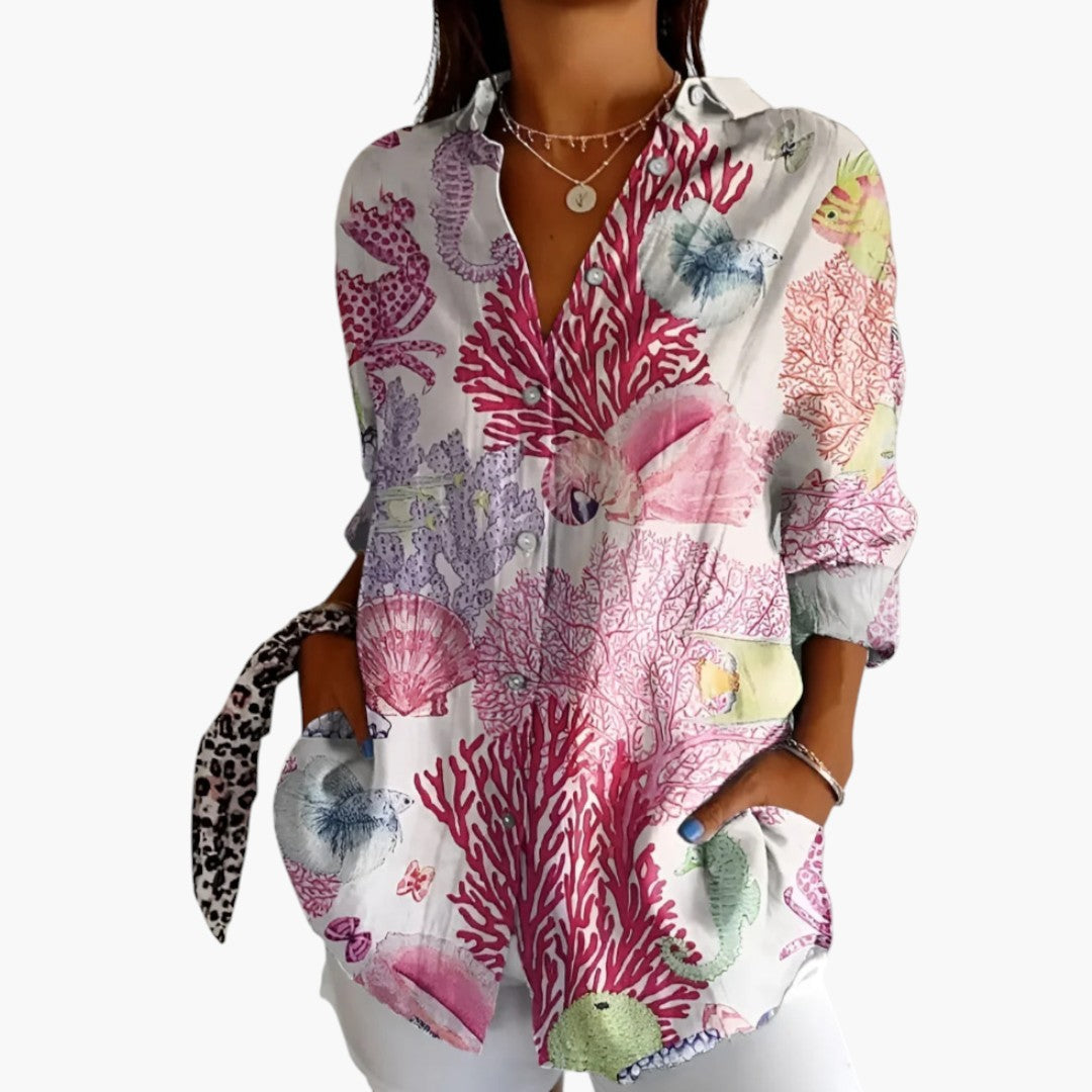 Imprimeu floral timpuriu: Imprimeul floral elegant în mai multe culori conferă bluzei un farmec vintage care rămâne mereu la modă.