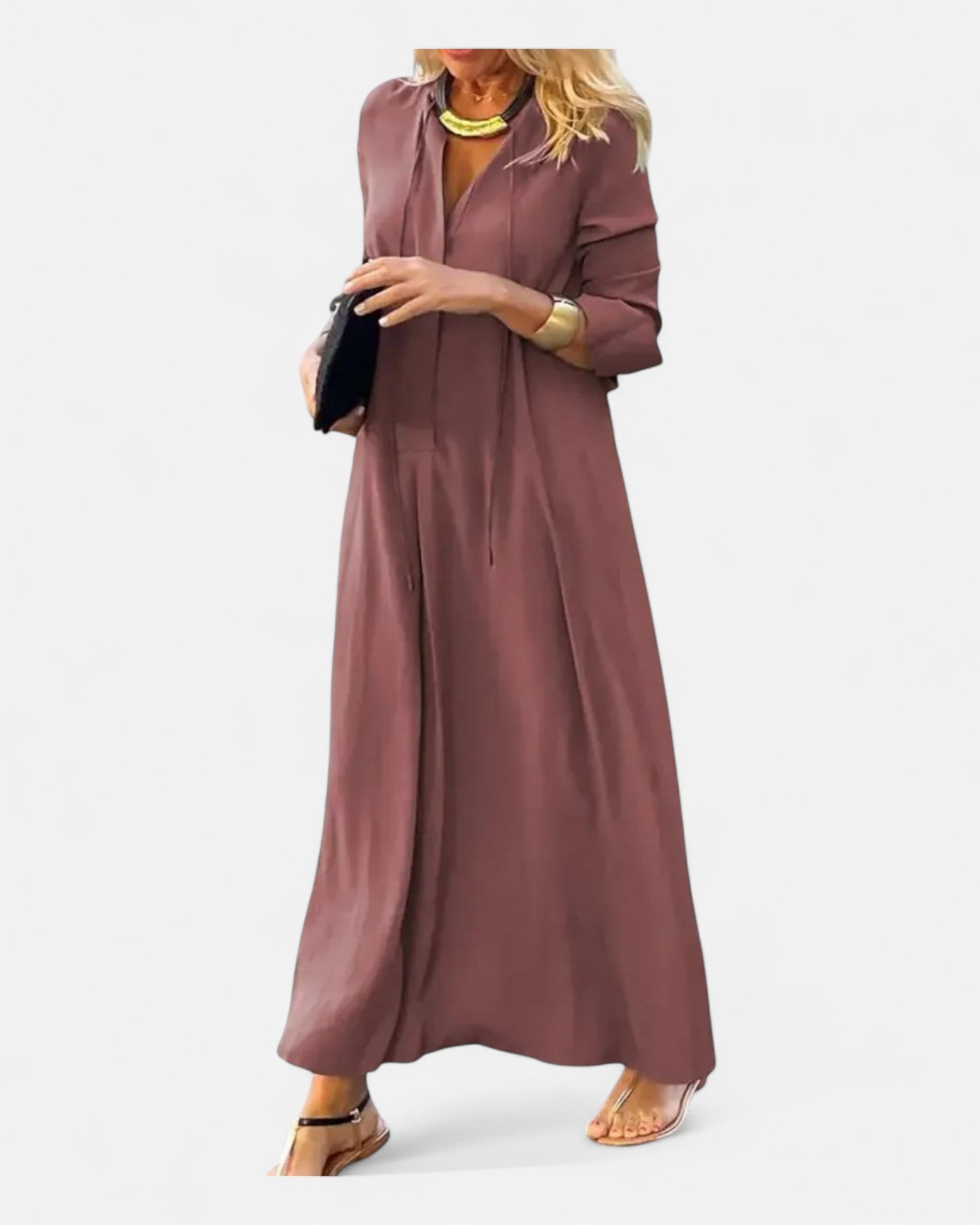 ✔ Design: Decolteu în formă de V, șnur reglabil și lungime maxi avantajoasă