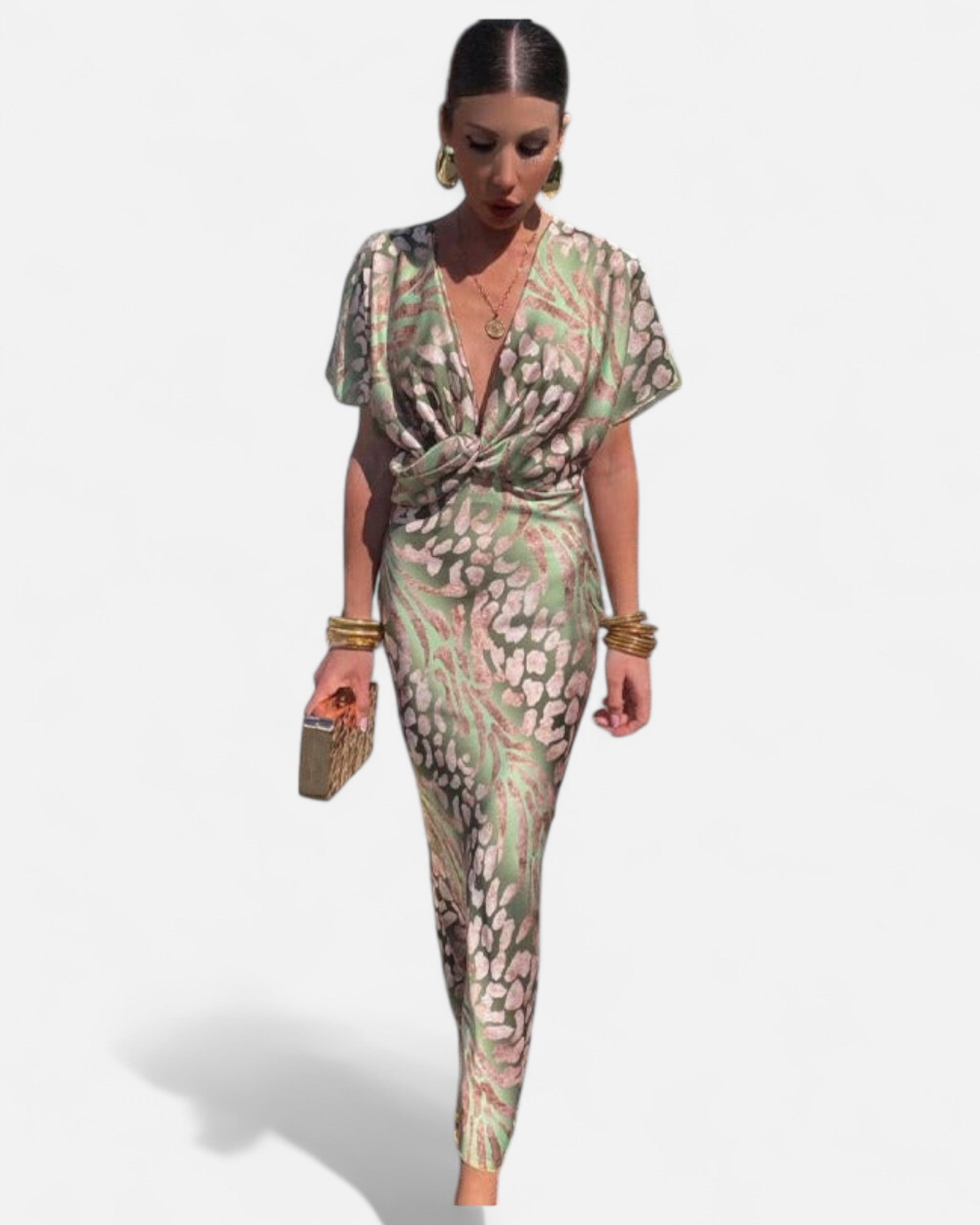 Kelsey - Rochie lungă cu decolteu în V și detaliu răsucit