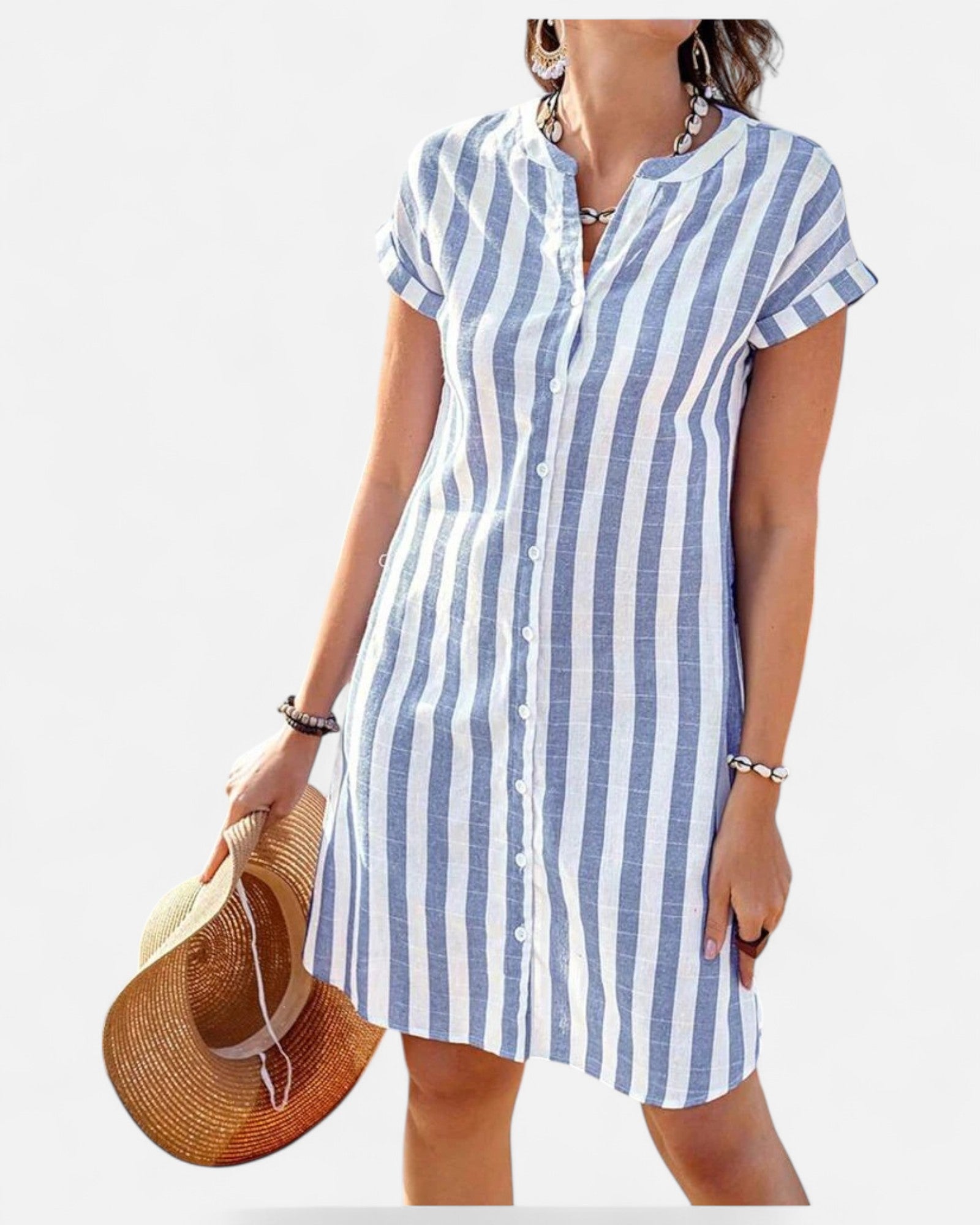 Lasă-ți stilul să vorbească cu rochia cămașă Martine™ – eleganță cu dungi subtile!