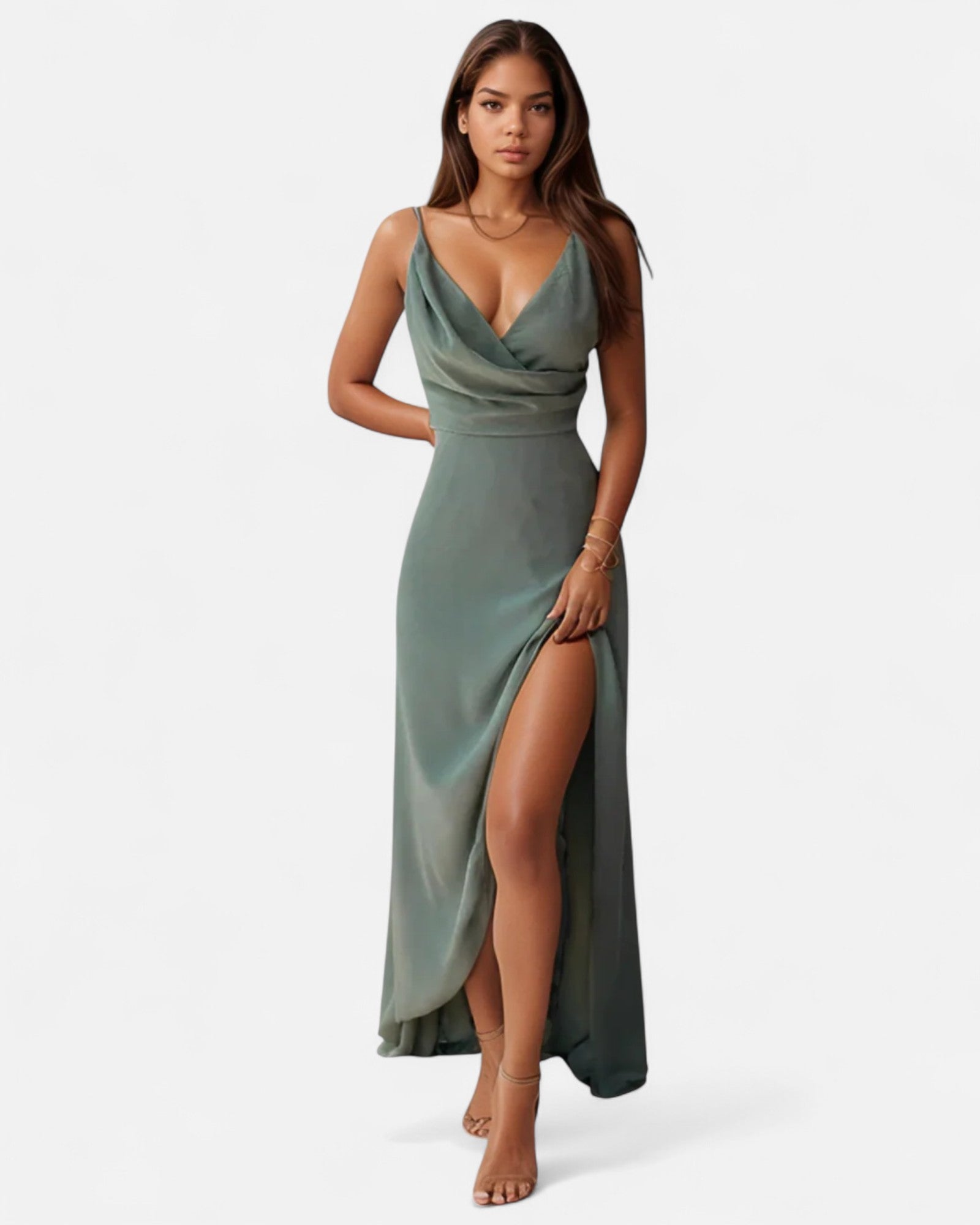 Mila™ | Rochie satinat cu decolteu în formă de apă și fante