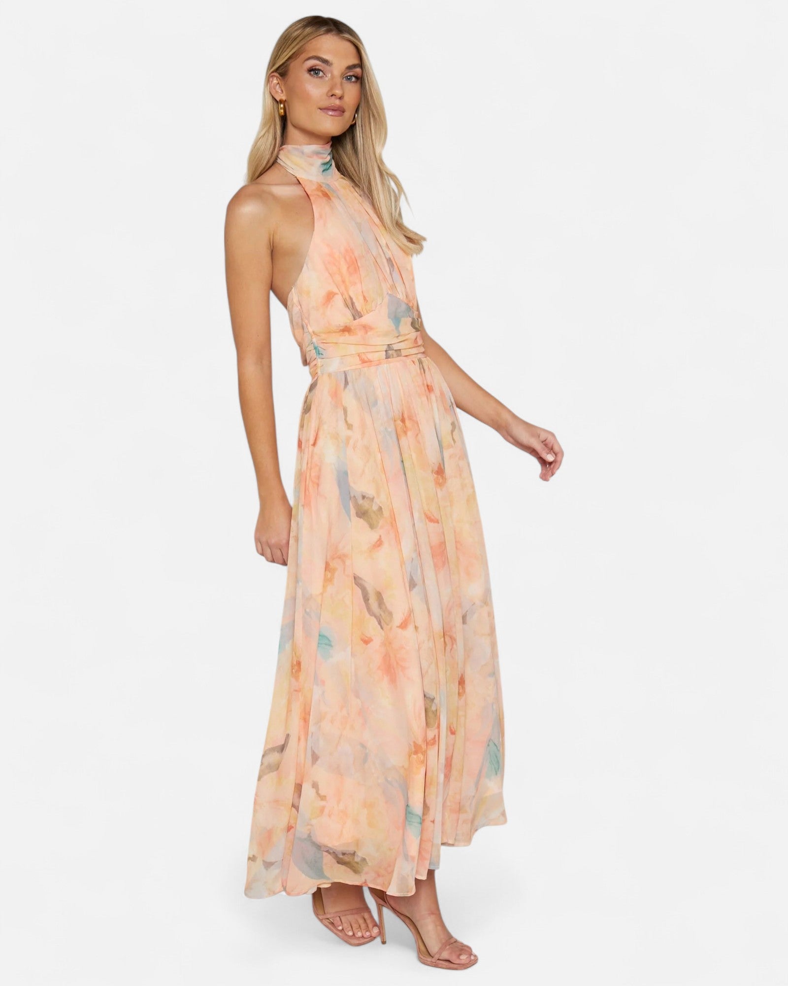 Rochia rafinată Naomi™ este un omagiu adus eleganței feminine, cu un strop de artă. Cu un guler tip halter flatant și un spate decupat seducător, această rochie îmbină perfect farmecul și rafinamentul. Croiala cambrată și lungimea maxi vaporoasă creează o siluetă armonioasă și mișcări elegante la fiecare pas. Ideală pentru nunți de vară, petreceri chic pe plajă sau seri romantice – cu Naomi™ vei atrage toate privirile.