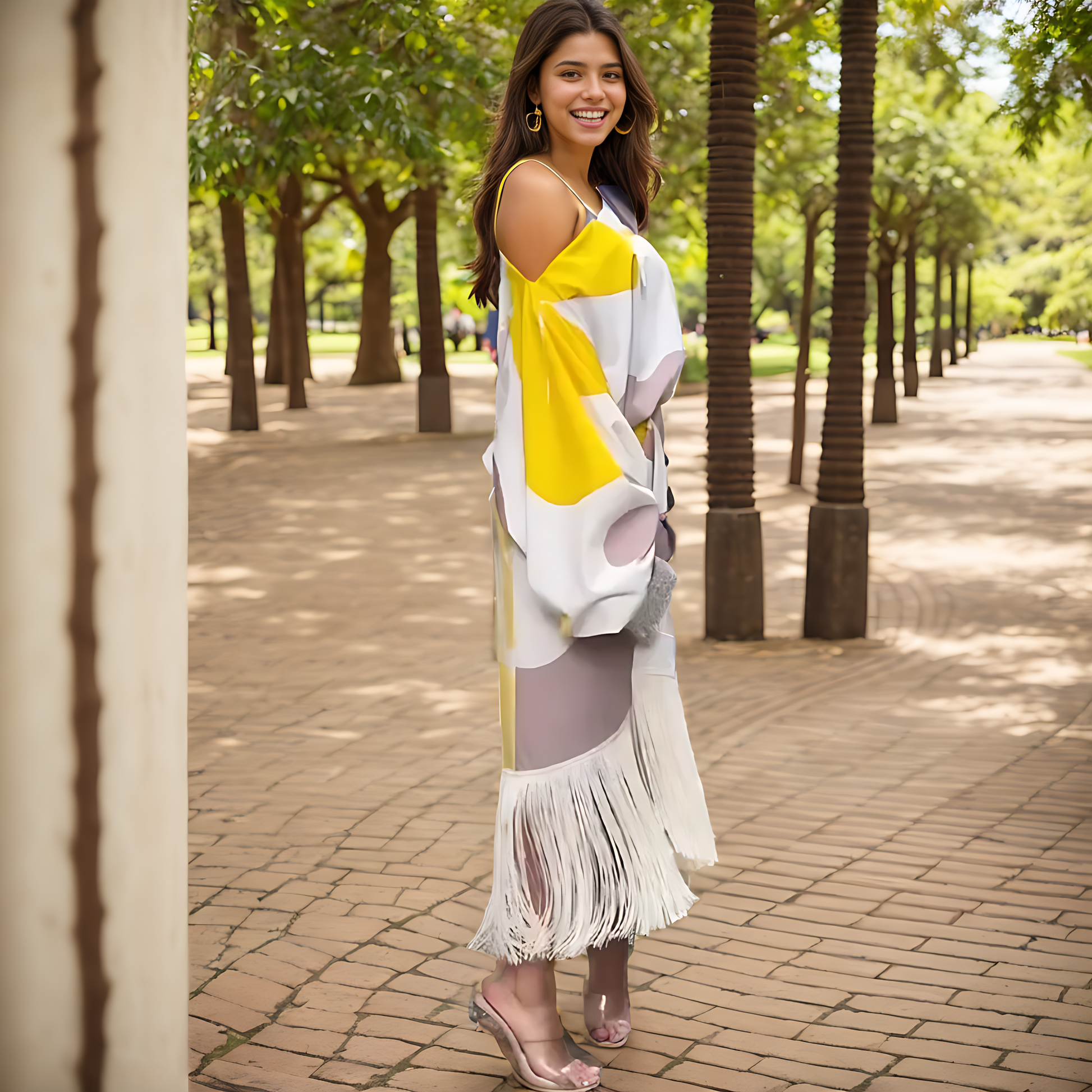 Talia™ | Rochie satinat cu volane îmbină un design artistic cu finețea feminină. Croiul fluid și designul asimetric pe un umăr îți oferă o apariție elegantă cu un accent modern. Franjurii delicati de la marginea rochiei subliniază fiecare pas într-un mod special – perfecte pentru petreceri de vară, seri de vacanță sau ocazii speciale.