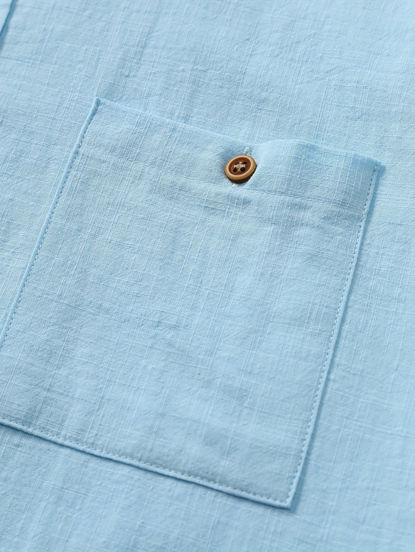 ✅Finisaj texturat: Suprafața subtil texturată a cămășii creează o atmosferă naturală și relaxată. Reduce vizibilitatea cutelor și sporește farmecul său natural. Ideal pentru bărbații care apreciază moda lejeră, cu un twist modern.
